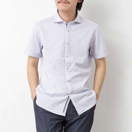 《ビジカジ対応》ハイゲージ サッカーストライプパラシュート半袖シャツ 25SS