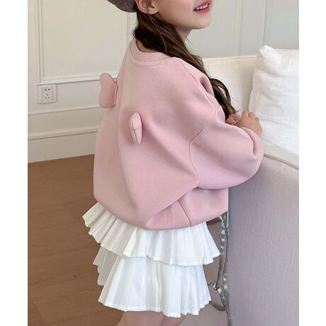 淡いピンク色で優しく可愛らしい雰囲気を醸し出します。シンプルな刺繍が施され、デザインにアクセントを加えつつ高級感をプラスして、背面には天使の羽のような立体的な装飾があります。シンプルなデザインに遊び心を添えて、ゆったりとしたドロップショルダーのデザインで動きやすさとトレンド感を両立しています。