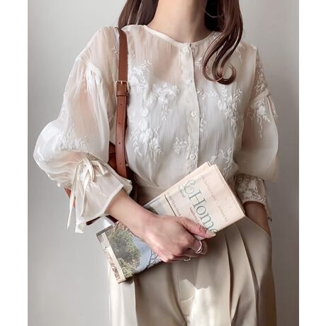 花柄シアートップス