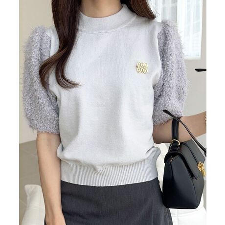 ふわふわのシャギーで切り替えたパフスリーブが印象的なデザイン。