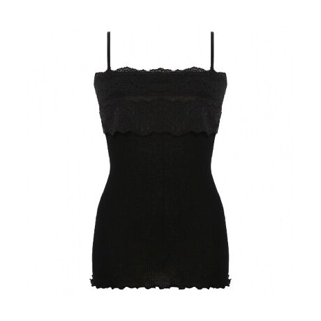 取り外し可能な肩ひもを採用し、身生地上辺に幅広の平ゴムを内蔵しているので、チューブトップ(ベアトップ)としても着用可能な万能キャミソール。