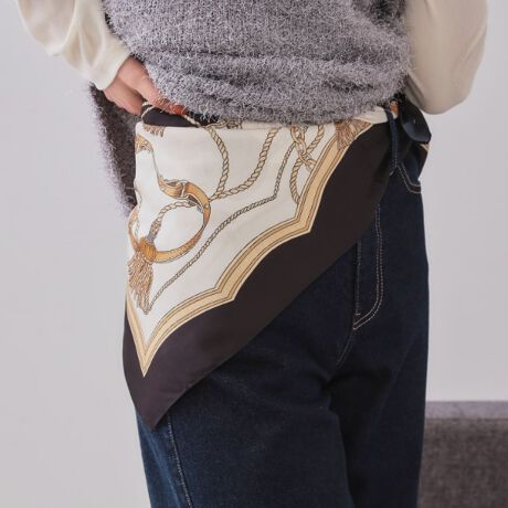 ・モードな印象の上品感のあるチェーン柄で、結んだりねじった時も柄の雰囲気を楽しめます。