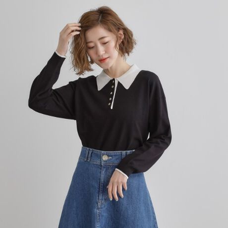 衿付きが今の気分 トレンドポロニットプルオーバー
