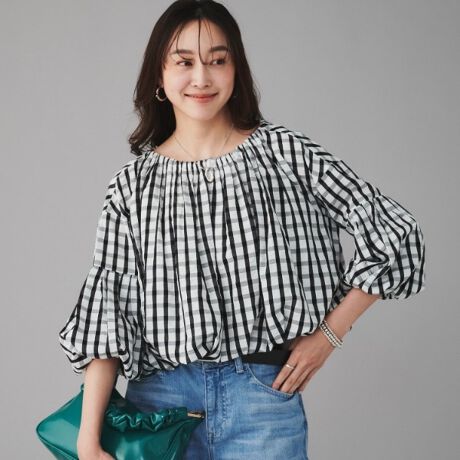 マルイウェブチャネル   /   アンタイトル   /   トップス   /   ブラウス   /   【MARILYN MOON】前後2way クレープチェックバルーンスリーブブラウス