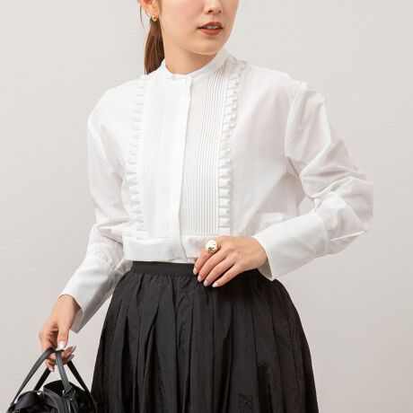 【MARILYN MOON/マリリーンムーン】タックフリルフレアシャツ