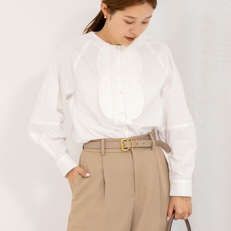 ・タックモチーフが華やかなコクーンシルエットのブラウス