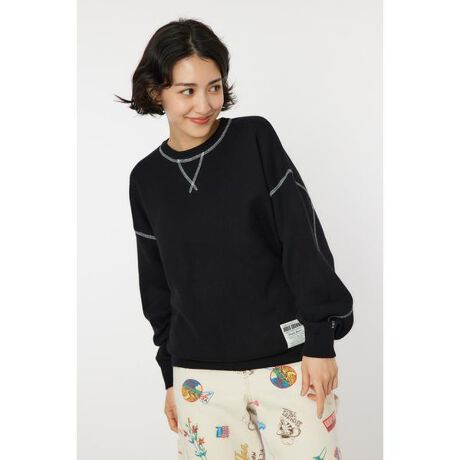 ■ポイントシンプルなクルーネックのデザインにガゼットを施し、スウェットのような感覚で気軽に着ることができるニットトップス。■ディティール配色になったステッチがデザインのアクセントです。表側はアクリルコットンで膨らみを出し、ポリエステル素材を裏に重ね編みすることにより、触感はドライタッチに仕上げています。■スタイリングシンプルなので、女性らしいタイトスカートやメンズライクなワイドパンツとも相性抜群。同素材で展開しているスウェットライクニットスカート(420ISH71-2621)とセットアップでの着用もおすすめ。■生地マシンウォッシャブル可能な商品です。長時間ハンガーに掛けておくと、衿元などが伸びる可能性がございます。こまめにハンガーから外すなど、取り扱いには十分ご注意下さい。毛玉などが発生した場合は、はさみなどできれいにカットしてください。ポケット:なし裏地:なし透け感:なし伸縮性:なし