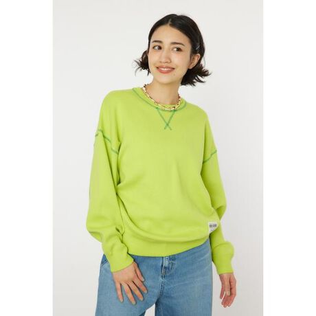 スウェットライクカラーステッチニットトップス