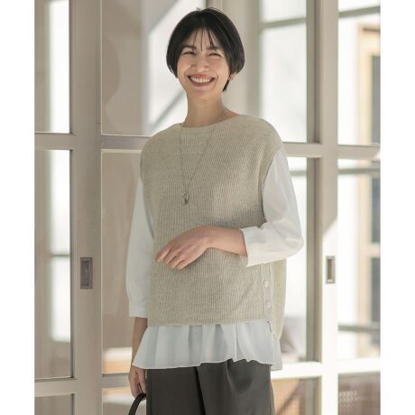 サイドのスリットで抜け感をプラス!インナーを変えて着回しできる、ニットベスト