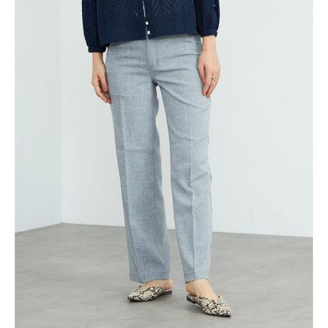 グレー/ライトベージュ:見た目も涼しげな麻調ストレッチ素材。乾きやすく、軽く、シワになりにくい、使い勝手に優れた素材。。