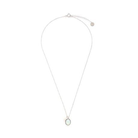 春らしい天然石を華奢な土台に乗せ上品なペンダントトップのチェーンネックレスです。一緒に下げたパールもポイントです。