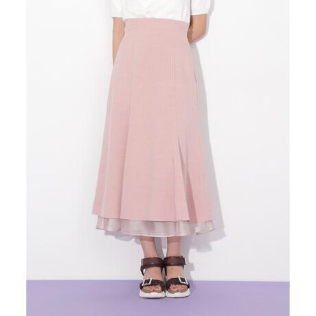 春夏らしい麻調の合繊素材のスカートに、裾からシアーソフトオーガンジーをのぞかせた軽やかなデザイン。シルエットはハイウエストのマーメイドシルエットで絞りすぎず、裾にフレアを入れています。バックスタイルのレースダウンでさらにウエストを絞ることができます。※撮影時照明の関係により、色味が違って見える場合がございます。またパソコン・スマートフォンなどの環境により、若干製品と画像のカラーが異なる場合もございます。予めご了承ください。商品の色味は、商品単品画像をご参照下さい。※商品画像はサンプルのため、色味やサイズ等の仕様に変更がある場合がございますので、予めご了承ください。