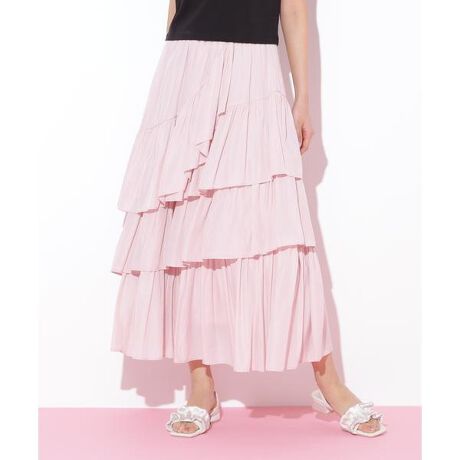 軽くて柔らかいコットンタッチのティアードスカート。落ち感のある素材なので膨らみすぎず、すっきりとした縦長シルエットを叶えます。トレンドの縦に入れたラッフルとアシンメトリーのティアードデザインがポイント。ウエストはゴム仕様ではき心地が良いです。今季トレンドのグリーンはおススメカラーです。※撮影時照明の関係により、色味が違って見える場合がございます。またパソコン・スマートフォンなどの環境により、若干製品と画像のカラーが異なる場合もございます。予めご了承ください。商品の色味は、商品単品画像をご参照下さい。※商品画像はサンプルのため、色味やサイズ等の仕様に変更がある場合がございますので、予めご了承ください。