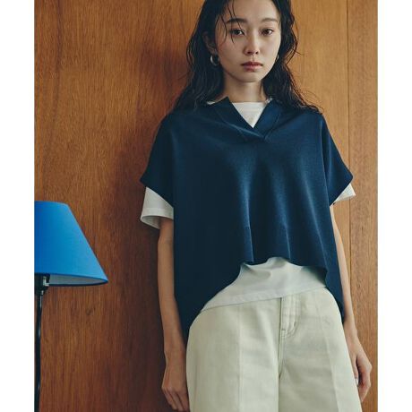 ゆったりとしたシルエットでリラックスムード抜群なポロニット。袖は肩まわりから二の腕ラインをカバー、身頃はゆったりとしたシルエットで着やすいデザインです。前から後ろにかけて裾はなだらかにカーブをつけており、アウトスタイルが様になる一枚。中にノースリーブアイテムや白Tをインナーに合わせて、ちらっとのぞかせるのもお勧めです。