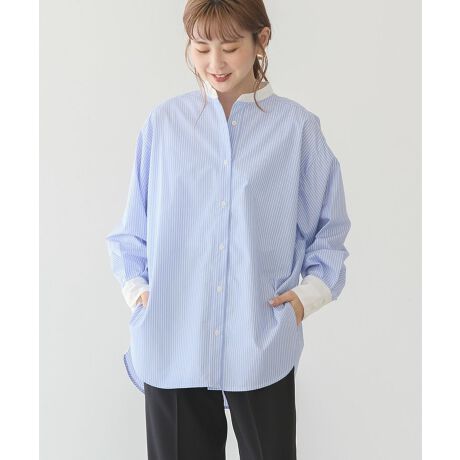 ロング丈デザインシャツ コットンベース バンドカラー 無地配色 シワになりにくい オーバールーズ 春夏 トップス シャツ・ブラウス 30代 40代 レディース カジュアル 春夏 25SS AMERICAN HOLIC AMERICAN HOLIC アメリカンホリック アメホリ