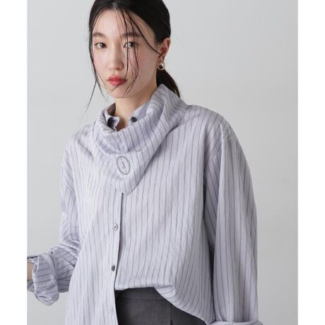 シャツ本体と同じ素材のスカーフがセットになったアイテム。スカーフは首に巻いたり、ヘアアクセとしてお使いいただいたり、様々なアレンジが楽しめます。アウターライクにTシャツなどの上に羽織ったり、ニットやスウェットを合わせたりとレイヤードスタイルもおすすめです。