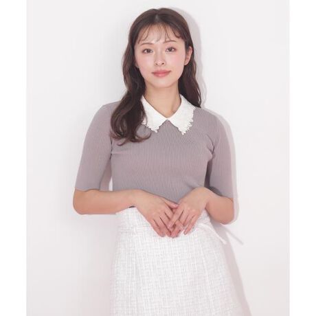クラシカルな雰囲気の襟付きリブニットに5分袖が登場!白襟とレースの組み合わせで顔まわりを華やかに演出します。襟は取り外しできるので、シンプルなリブニットとしても着られるデザイン。身頃はすっきりシルエットのため、ボトムスにインするとスタイルアップ見えを叶えてくれます。※撮影時照明の関係により、色味が違って見える場合がございます。またパソコン・スマートフォンなどの環境により、若干製品と画像のカラーが異なる場合もございます。予めご了承ください。商品の色味は、商品単品画像をご参照下さい。※商品画像はサンプルのため、色味やサイズ等の仕様に変更がある場合がございますので、予めご了承ください。※ピリングに御注意ください。ピリングは、着用中の摩擦作用により出来た毛玉のことで、これは素材の特性上着用の際避けられない現象です。ピリングが出来ましたら、ブラッシングか、小さなハサミで1つ1つ取り除いて下さい。