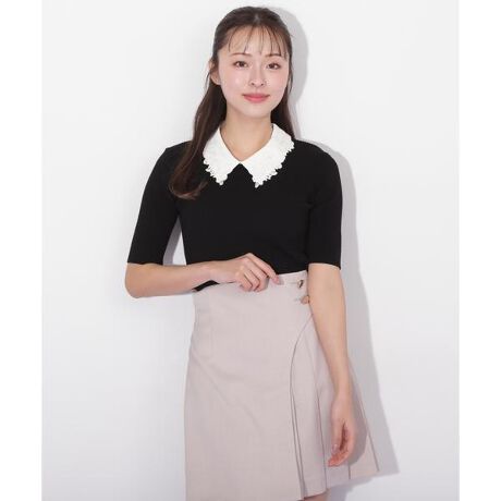 クラシカルな雰囲気の襟付きリブニットに5分袖が登場!白襟とレースの組み合わせで顔まわりを華やかに演出します。襟は取り外しできるので、シンプルなリブニットとしても着られるデザイン。身頃はすっきりシルエットのため、ボトムスにインするとスタイルアップ見えを叶えてくれます。※撮影時照明の関係により、色味が違って見える場合がございます。またパソコン・スマートフォンなどの環境により、若干製品と画像のカラーが異なる場合もございます。予めご了承ください。商品の色味は、商品単品画像をご参照下さい。※商品画像はサンプルのため、色味やサイズ等の仕様に変更がある場合がございますので、予めご了承ください。※ピリングに御注意ください。ピリングは、着用中の摩擦作用により出来た毛玉のことで、これは素材の特性上着用の際避けられない現象です。ピリングが出来ましたら、ブラッシングか、小さなハサミで1つ1つ取り除いて下さい。