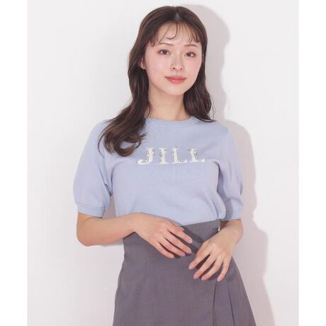 半袖ロゴジャカードビジューニット