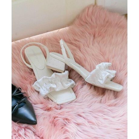 ぷっくりとしたフリルが特徴的なフラットサンダル。微光沢サテンにさりげない極小メタリックホットフィットがポイントです。バックストラップ付きや安定感のあるヒールで履き心地が良いデザイン。JILL by JILL STUARTらしいデザインとカラーが魅力の1足です。※撮影時照明の関係により、色味が違って見える場合がございます。またパソコン・スマートフォンなどの環境により、若干製品と画像のカラーが異なる場合もございます。予めご了承ください。商品の色味は、商品単品画像をご参照下さい。※商品画像はサンプルのため、色味やサイズ等の仕様に変更がある場合がございますので、予めご了承ください。