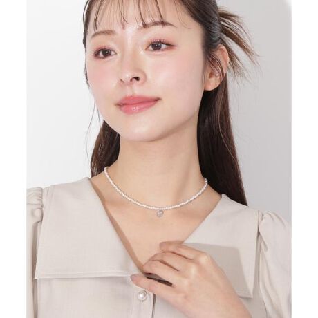 極小パール調ビーズ&ハートパーツを組み合わせたネックレス。形にばらつきがあるパール調と、細かいビジュー調が埋め込まれたハートモチーフの組み合わせで、抜け感のあるデザインに。フェミニンなワンピーススタイルにもカジュアルスタイルにも相性がよくオススメです。※撮影時照明の関係により、色味が違って見える場合がございます。またパソコン・スマートフォンなどの環境により、若干製品と画像のカラーが異なる場合もございます。予めご了承ください。商品の色味は、商品単品画像をご参照下さい。※商品画像はサンプルのため、色味やサイズ等の仕様に変更がある場合がございますので、予めご了承ください。