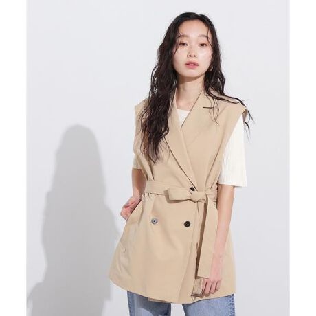 さらりと羽織るだけでレイヤードが叶うトレンチ風ジレ。バックスタイルはヨーク切り替えと裾センターベンツが入っているので、動きやすいデザイン。共地ベルトでウエストマークすれば、メリハリのあるシルエットが叶います。前を開けたままでも羽織れるデザインなので、コーディネートの幅が広がります。