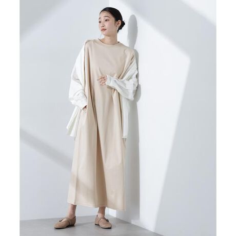 きちんと感があり、カジュアル過ぎないカットソーワンピース。気になる二の腕や、お腹周りをカバーしてくれ体のラインを拾わないシルエットとサイジングがポイントな一枚です。