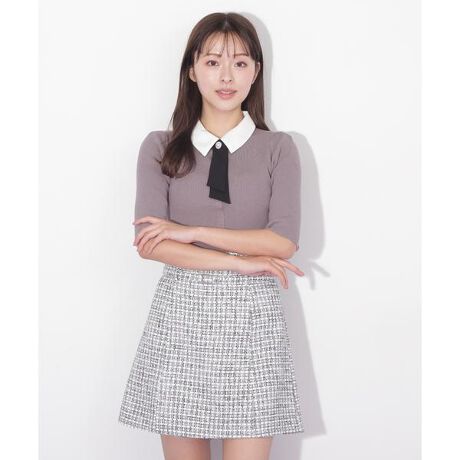 人気のアイテムから5分袖が登場!配色の襟とタイが大人のきちんと感を演出するニットトップス。伸縮性のあるリブニットで程よいフィット感があり、ソフトな着心地と肌触りが魅力。ロングスカート、ミニスカート、パンツ合わせなど、どんなボトムスとも品よくコーディネートが決まるので、オンオフ選ばず着回しできます。ホームケアの時に襟とタイは取り外し可能です。※撮影時照明の関係により、色味が違って見える場合がございます。またパソコン・スマートフォンなどの環境により、若干製品と画像のカラーが異なる場合もございます。予めご了承ください。商品の色味は、商品単品画像をご参照下さい。※商品画像はサンプルのため、色味やサイズ等の仕様に変更がある場合がございますので、予めご了承ください。