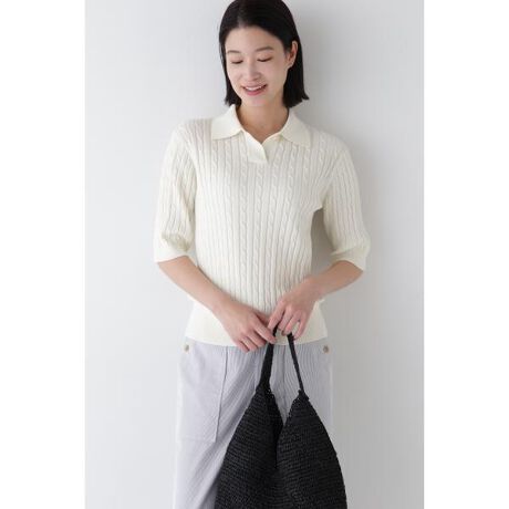 今年らしい着こなしを楽しむケーブル編みポロニット