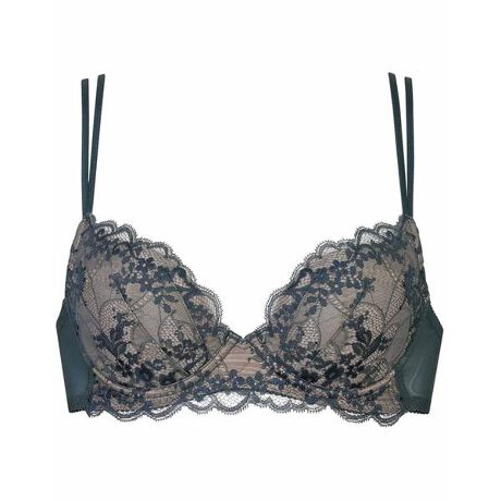 ●ふっくらとした谷間をメイク 伸びない素材の脇布でバストを寄せて、前中心の低いワイヤーでまるみのあるシルエットに●軽やかなつけごこち 軽量化にこだわった素材使い カップ脇上辺からバック上辺、アンダーは伸びのよいストレッチテープを使用タイムレスな魅力を放つアンティーク調リバーレースが美しい、インポートライクな雰囲気。研ぎ澄まされたシンプルさの中に大人の気品が漂う、洗練されたデザインです。カップはコンパクトなフォルムで、華奢な印象に。軽量化にこだわった素材使いで軽やかなつけごこちでありながら、ふっくらとまるみのある自然なバストラインにととのえます。