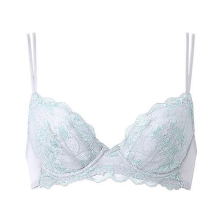 ●ふっくらとした谷間をメイク 伸びない素材の脇布でバストを寄せて、前中心の低いワイヤーでまるみのあるシルエットに●軽やかなつけごこち 軽量化にこだわった素材使い カップ脇上辺〜バック上辺、アンダーは伸びのよいストレッチテープを使用・シンプルでインポートライクなデザイン。カップはコンパクトで華奢なシルエット