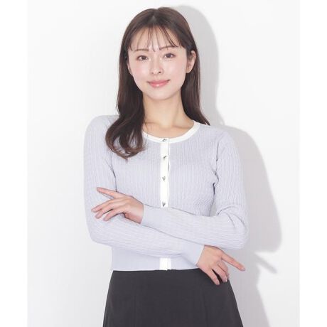 アクセサリーのような小さいハート釦が大人かわいいカーディガン。ハイゲージの細ケーブル編みなのでカジュアルすぎず、上品な印象に見せてくれます。襟ぐりや前立ての配色がポイントになって、前ボタンを留めてトップスとして着ても洒落感を演出。清涼感のあるドライタッチな糸を使っているため、暑い時期でも着やすく、ロングシーズン活躍できます。※撮影時照明の関係により、色味が違って見える場合がございます。またパソコン・スマートフォンなどの環境により、若干製品と画像のカラーが異なる場合もございます。予めご了承ください。商品の色味は、商品単品画像をご参照下さい。※商品画像はサンプルのため、色味やサイズ等の仕様に変更がある場合がございますので、予めご了承ください。