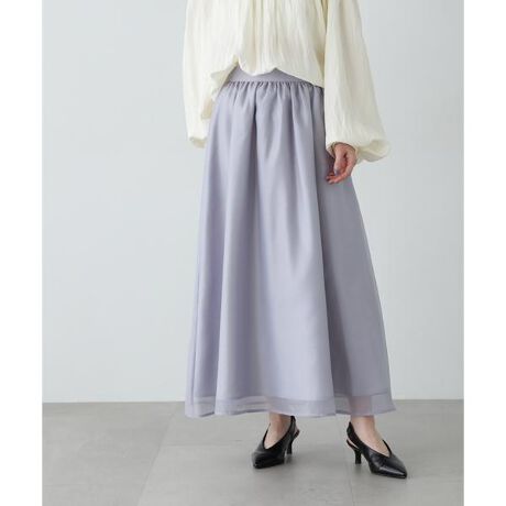 <petit size>通常のSサイズやMサイズから着丈などの長さを短くリサイズし、150cm 前後の低身長さんにもバランスよく着用いただけるサイズに仕上げています。限定店舗・official site限定展開です。シアー感を持たせた華やかなレイヤーフレアスカート。裾まわりの適度なシアー感が、歩くたびにふんわりと揺れて軽やかな足元に見せてくれます。後ろウエストはゴムが入っているので、インでもアウトでも決まるフィット感。ゆるっとしたトップスと合わせると、リラクシーなムードで着用いただけます。