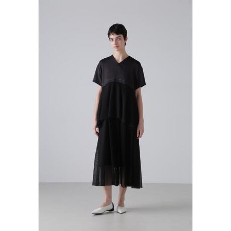 カットソー素材のメッシュ生地をエレガンスに表現したワンピースです。