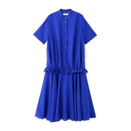 清涼感のある、梳毛(そもう)見えする合繊素材で仕立てたドレスです。