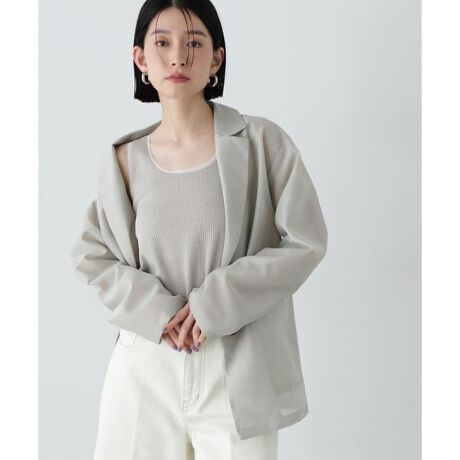 ヘルシーさを叶えるシアートリムタンクトップ。襟とアームホールにシアー素材をトリミングした、軽やかなデザイン。シンプルなネックラインで、デコルテを綺麗に見せてくれます。これからの季節、シアーシャツを羽織ったり、ジャケットインするのも大人っぽく着こなせるのでお勧めです。