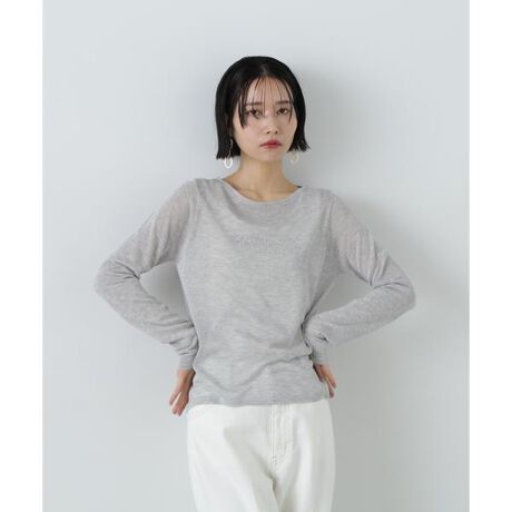ベーシックなデザインながら、さり気ないロゴ刺しゅうがアクセントになり、大人な雰囲気に見せてくれるシアーニット。程よくゆとりのあるシルエットなので、シアー素材でも着やすくなっています。お持ちのインナーを合わせていただき、ヘルシーな肌見せと軽やさを演出できるアイテムです。