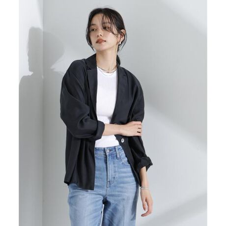 肩の落ちた抜け感のあるシルエットと素材感を活かしたテーラードジャケット。生地に適度な肉感とハリがあり、すっきりとした上品な印象。軽くて羽織やすいので、カーディガン感覚でも着用もしやすく冷房対策としても重宝する一枚です。