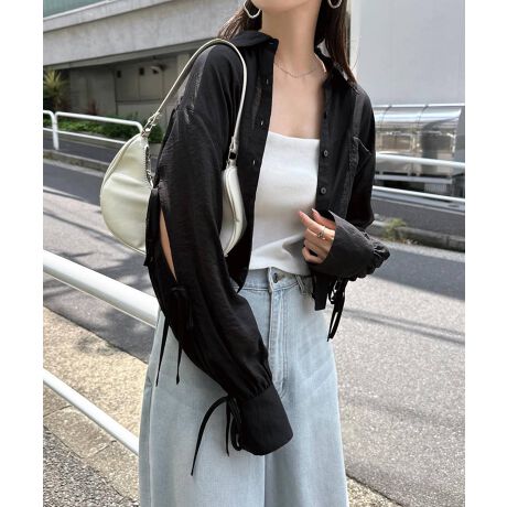 袖スリット リボン シアー シャツ ブラウス Freesia フリージア