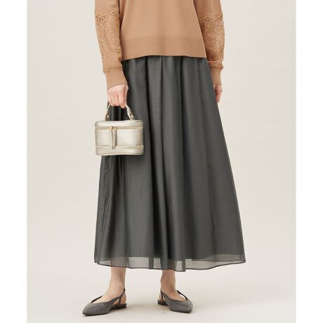 軽やかでふんわりと広がる、程よくシアーな素材が華やかなスカート■デザイン片倒しのタックディテールと裾にかけてふんわりと広がるシルエットがポイントのスカートです。上品な光沢感と軽やかに広がるボリューム感が女性らしく、コーディネートを華やかに演出してくれます。とても軽やかで、ウエストは総ゴム仕様なので快適な着心地です。■素材上品な光沢感と程よいシアー感のある素材です。セルロース特有のソフトな風合いで落ち感があり、シルエットを綺麗に出してくれます。軽やかさと、カラーの発色の良さもポイントです。■関連アイテムウィンドウペンチェックスカート(SKWMGM0319)