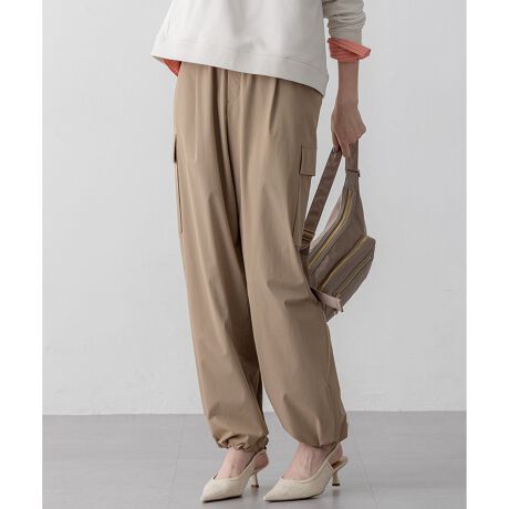 トレンド感のあるバレルシルエットをベースにしたパラシュートパンツを、23区で人気の素材に落とし込みました。サイドにつけたポケットとウエストのドロストがアクセントになっています。裾を絞っても、フラットにしてワイドパンツ風にも着方の楽しめる1枚です。カラーは、明るい色味のベージュ(#033)、ニュアンス感のあるグレー(#004)、カジュアルスタイルにも合わせやすいブラウン(#030)の3色展開です。