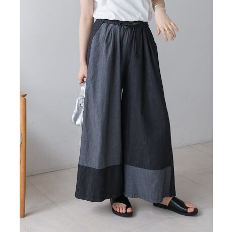 配色デザインが目を引く一本。歩くたびに揺れるワイドシルエットが、大人の余裕を感じさせます。ウエストはゴム仕様だから、ストレスフリーな履き心地。さらに紐で調整できるので、自分にぴったりのフィット感を叶えます。Tシャツを合わせてカジュアルに、ブラウスを合わせてきれいめに。コーデ次第で印象が変わるから、毎日の着こなしがもっと楽しくなるはず。