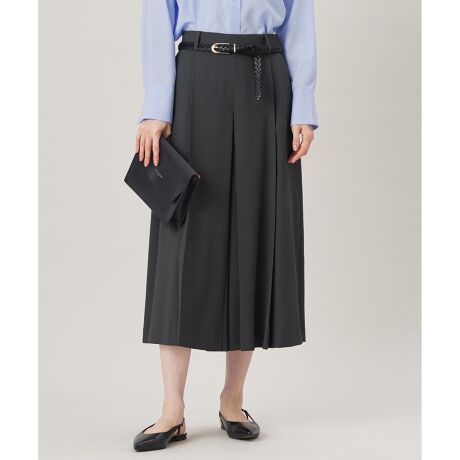 フレアシルエットでスカート見えするキュロットパンツ■デザインスカートのように見えるキュロットタイプのフレアパンツです。前にボックスタックを入れているため脚のラインを拾いにくく、パンツでありながらスカートのようにも見えるのでエレガントで女性らしいデザインです。ウエストの後ろ部分はゴム仕様になっているため、快適な着心地もポイントです。同素材のジャケットやビスチェと合わせてセットアップで着て頂くのもおすすめです。■素材麻見えを意識して作られた合成繊維素材です。スラブ調の糸を使用して表面に凹凸感を出し、よりナチュラルな天然素材の表情を実現しています。ストレッチ入りで着心地が良く、さらりとしたタッチと軽さ、通気性が特徴です。シワが目立ちにくく、キレイ見えし、接触冷感機能付きなのもポイントです。■同素材アイテムテーラードジャケット(JKW7GM0302)ワイドストレートパンツ(PRW7GM0302)ビスチェ(BLW7GM0302)
