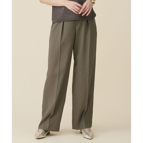 程よくゆとりのある美シルエットのワイドストレートパンツ■デザインタック入りのワイドストレートパンツです。腰周りはすっきりと見えつつ、太もも周りに程よくゆとりを持たせ、裾に向かって真っすぐと落ちる綺麗なシルエットです。程よい肉感の素材なので脚のラインを拾いにくく、ハリ感と滑らかさを兼ね備えた風合いがしなやかで美しいシルエットを生み出します。ウエストは脇から後ろ部分がゴム仕様になっているため、快適な着心地もポイントです。同素材のジャケットやビスチェと合わせてセットアップで着て頂くのもおすすめです。■素材麻見えを意識して作られた合成繊維素材です。スラブ調の糸を使用して表面に凹凸感を出し、よりナチュラルな天然素材の表情を実現しています。ストレッチ入りで着心地が良く、さらりとしたタッチと軽さ、通気性が特徴です。シワが目立ちにくく、キレイ見えし、接触冷感機能付きなのもポイントです。■同素材アイテムテーラードジャケット(JKWRGM0302)テーラードジャケットII(JKWRLS0306)ショートジャケット(JKWRLS0307)キュロットパンツ(PRWRGM0303)タックスカート(SKWRLS0306)ノースリーブブラウス(BLWRLS0306)ビスチェ(BLWRGM0302)