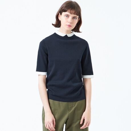 2015年登場以来、愛され続けているクレリックカラーニットは、首元の衿に見立てた切り替えが特徴。