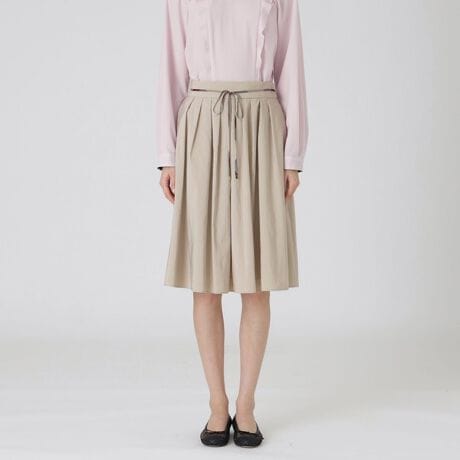 [型番:55S06525__]◆シルエットにこだわったAラインスカート【Design】柔らかく軽やかなAラインを描く膝丈スカートです。程よいタック分量で、ウエストから裾にかけて緩やかに広がるシルエットです。取り外し可能なチェックの紐がアクセントになります。トップス次第でシーンレスに活躍するアイテムです。