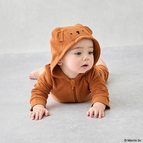 胸元の刺しゅうとフードのお顔デザインが愛らしいアイテム。