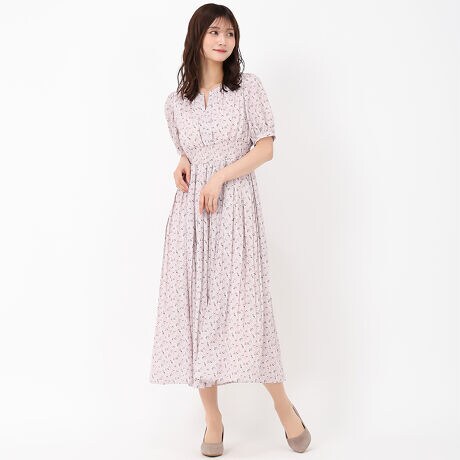 可憐な小花柄で魅せる、大人フェミニンなプリーツワンピース