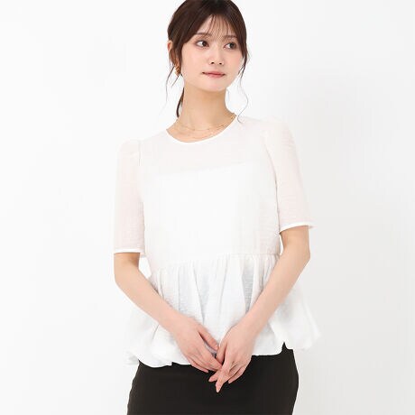 ペプラムのようなふんわりとしたバルーン裾が可愛らしいブラウス。パフスリーブで装いに華やかさもプラスしてくれます。ほんのりとしたシアー感のある生地でシーズンらしい軽やかな印象を演出。デートや休日のお出かけコーデなどにもぴったりの大人可愛いアイテムです。■fabric透け感[やや有り]裏地[一部有り]伸縮性[無し]生地の厚さ[薄手]
