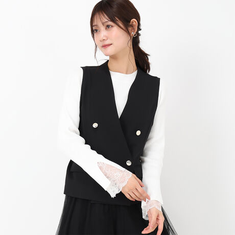 フロントの金釦が上品な風合いを放つアソートジレ。バックのウエストにはベルトが付いており、お好みのサイズに調整することができます。Vネックのデザインが首元をすっきりさせるのもポイント。シンプルなカットソーと重ねた着こなしがおすすめです。■fabric透け感[やや有り]裏地[無し]伸縮性[無し]生地の厚さ[普通]